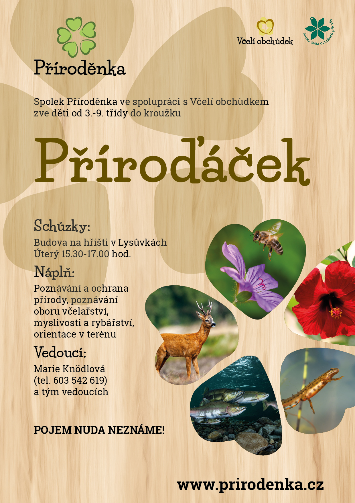 Opět rozjíždíme vzdělávací aktivitu pro děti. Děti od 3.-9. třídy mají možnost poznávat nejen obor včelařství, ale i myslivost, rybářství a přírodu. Schůzky se konají vždy v úterý od 15.30 - 17.00 hod. na hřišti v Lysůvkách. Informace podá M. Knödlová - tel. 603542619